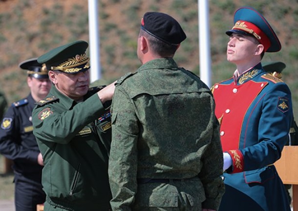 Вручал медали министр обороны России Сергей Шойгу, который накануне посетил Крым.