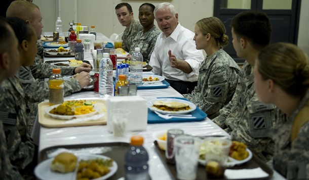 13) “Во время этой поездки я взял за правило, которому следовал все последующие визиты в Ирак и Афганистан, да и в любое военное поселение или подразделение, которое посещал в качестве министра, — я питался с военными, обычно с дюжиной или около того молодых офицеров (лейтенантов и капитанов), молодыми военнослужащими срочной службы или унтер-офицерами среднего звена. Они были удивительно искренни со мной — частично потому, что я не позволял никому из их командиров входить в комнату, — и я всегда много от них узнавал”