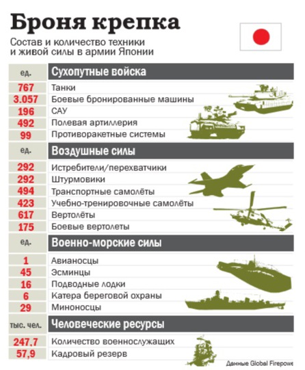 По данным исследовательской службы конгресса, к 2020 году Китай будет тратить на армию не менее $ 300 млрд, что сделает его второй в мире военной силой. В этих условиях Япония не может оставаться страной без армии.