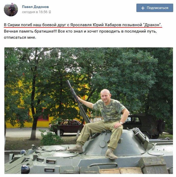 О гибели Хабарова сообщает расследовательская группа Conflict Intelligence Team (CIT). По данным расследователей, перед отправкой в Сирию россиянин воевал на стороне сепаратистов на Донбассе. Служил ли Хабаров в Сирии по контракту или был наемником, неизвестно.