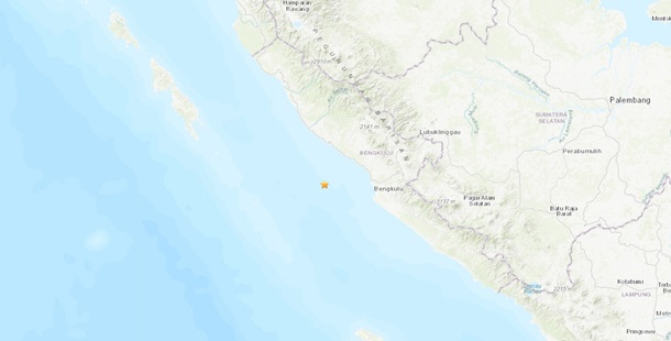 По ее данным, эпицентр землетрясения располагался на глубине более 50 километров и в 54 километрах на запад от населенного пункта Бенкулу.