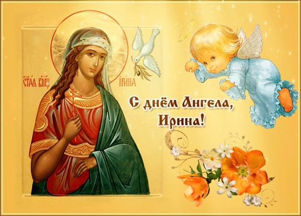 Дорогая Ирина! Поздравляю тебя с Днем Ангела! Желаю легкости во всех начинаниях. Не живи прошлым, смотри только вперед. Всегда верь в себя и свои силы. Пусть темные тучи никогда не закрывают собой ясное небо твоего счастья!