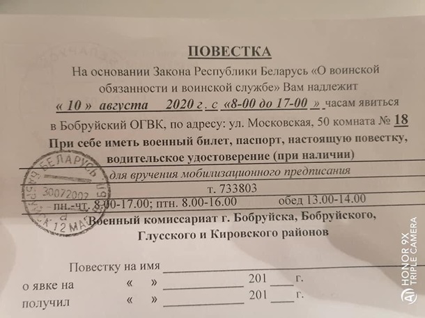 Ранее в сети появилась информация о том, что жители Витебской обалсти получают "мобилизационные" повестки.