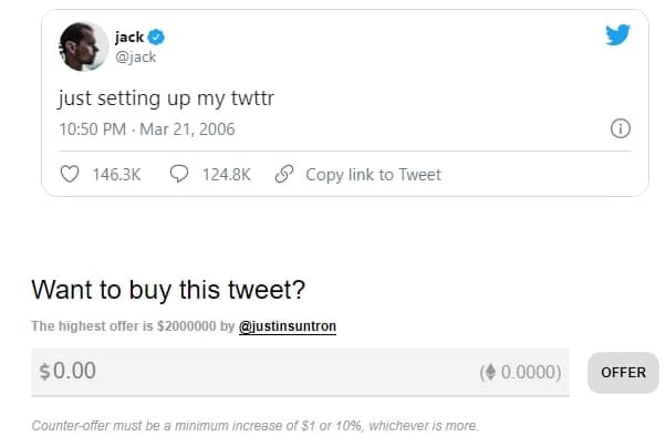 Так, за сутки после начала торгов цена лота увеличена до двух миллионов долларов. Основная борьба за право приобрести его идет между гендиректором компании Bridge Oracle Хаканом Эстави и китайским бизнесменом, основателем криптовалюты Tron Джастином Саном, ставка которого пока не перекрыта.
